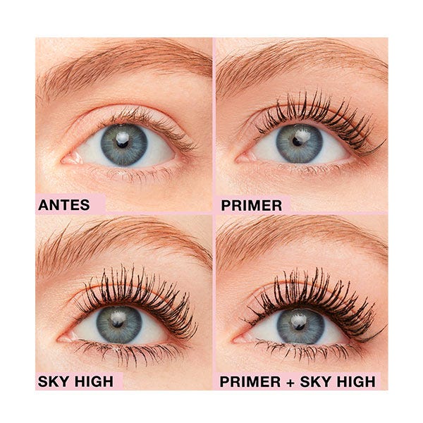 Úsalo solo para un acabado natural mientras cuidas tus pestañas o con la máscara Sky High para una longitud y volumen amplificados.