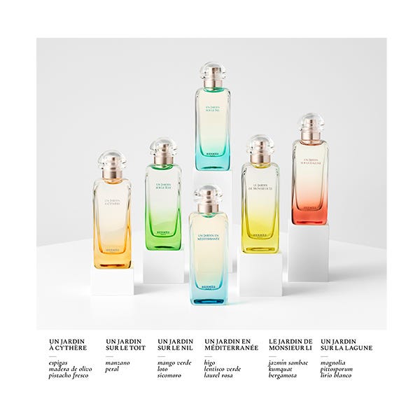 La pirámide olfativa de Le Jardin De Monsieur Li, inicia con kumquat, un aroma oriental y exótico que recrea un pequeño paraíso en la tierra. Seguidamente, sobre su corazón podemos percibir la suavidad del jazmín, una nota que regula y equilibra la frescura, y la convierte en una sensación aromática altamente reconfortante. Finalmente, la refrescante menta es la encargada de finalizar esta experiencia.