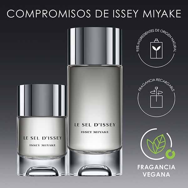 Le Sel d’Issey Eau de Parfum está hecho con un 94% de ingredientes de origen natural, incluyendo alcohol francés 100% de origen natural, y tiene certificación vegana.