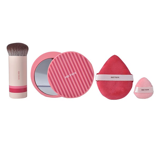 Los esenciales para aplicar y retocar el maquillaje en cualquier momento: espejo de bolso, brocha de pelo sintético y aplicadores para sellar el maquillaje. El regalo perfecto para cualquier ocasión.