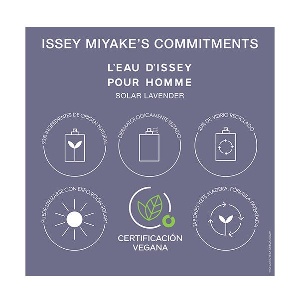 L'Eau d'Issey pour Homme Solar Lavender es una fragancia con certificación vegana elaborada con un 93% de ingredientes de origen natural.