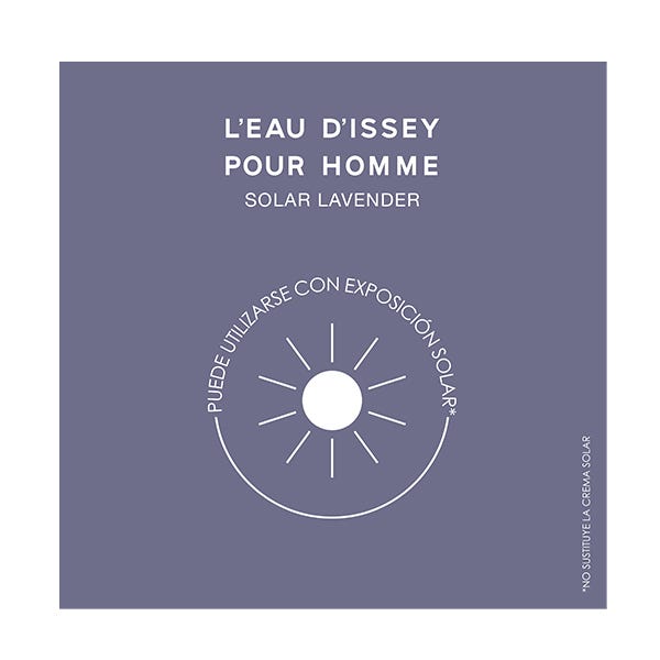L'Eau d'Issey pour Homme Solar Lavender Eau de Toilette Intense es el nuevo perfume para hombre de Issey Miyake. Nacido bajo los rayos del sol primaveral, esta fragancia masculina es un despertar de contrastes en el que el agua se encuentra con la materia para crear una interpretación moderna de la lavanda.