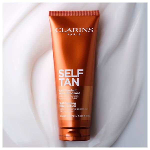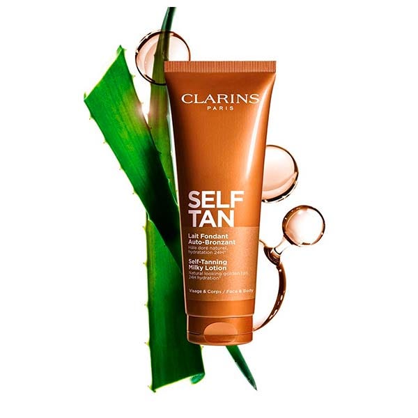 Self-Tanning Milky Lotion de Clarins es una leche autobronceadora para rostro y cuerpo que proporciona un tono dorado y uniforme mientras cuida la piel día tras día.