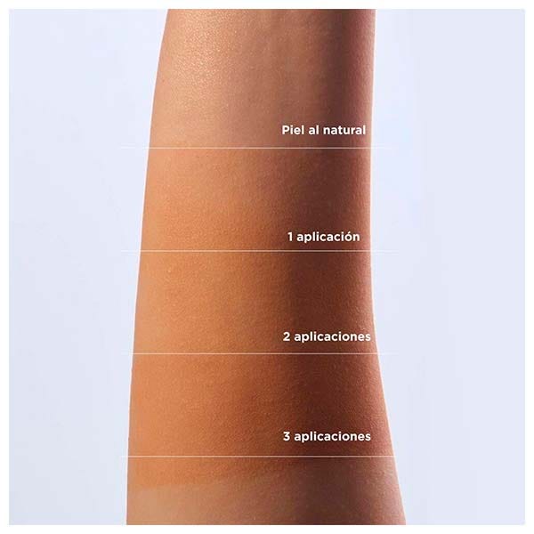 El bronceado aparece progresivamente tras la aplicación y puede modularse según la frecuencia de uso, permitiendo un resultado a medida y de aspecto muy natural.