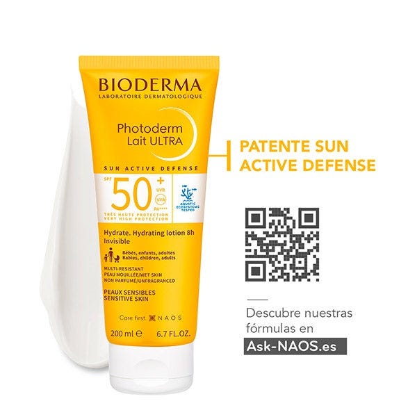 Photoderm Lait ULTRA SPF50+: ofrece una protección optimizada muy alta frente a los rayos UVA/UVB, activa las defensas naturales de la piel y la protege del daño celular.
