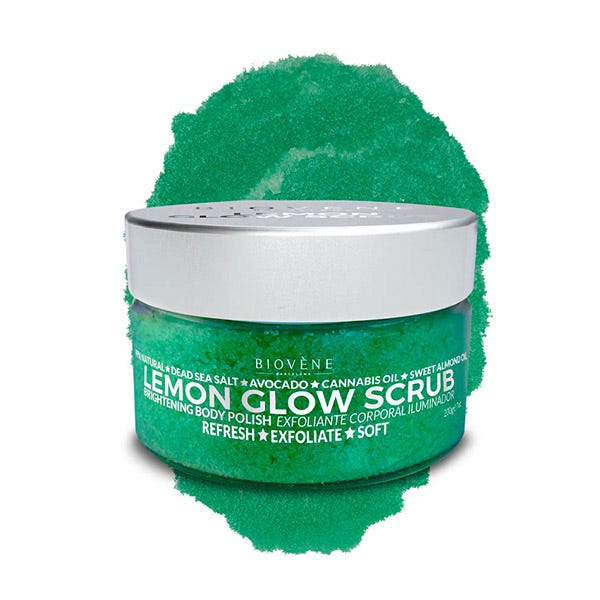 Exfoliante corporal de limón que restaura el brillo con sal del mar muerto e ingredientes estrella aguacate y aceite de cannabis, aceite de almendras dulces exfolia, refresca, tonifica e hidrata su piel para restaurar la suavidad y el brillo.