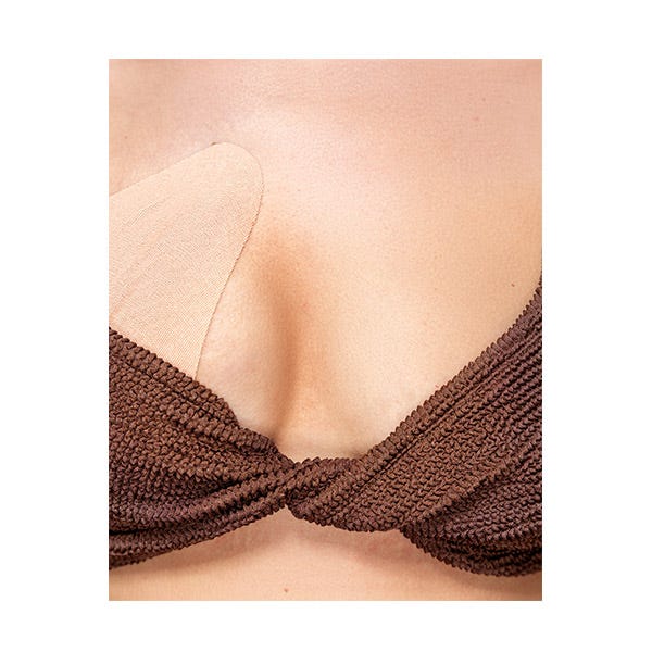 - Despegue el adhesivo de la parte posterior de la cinta y colóquela debajo del pecho.