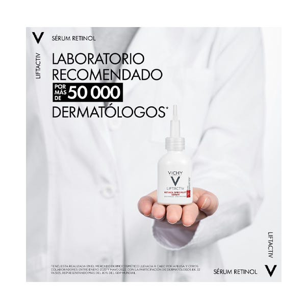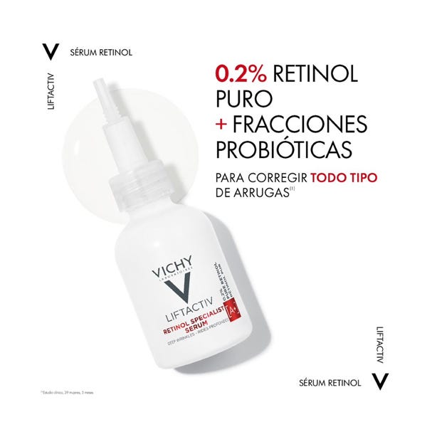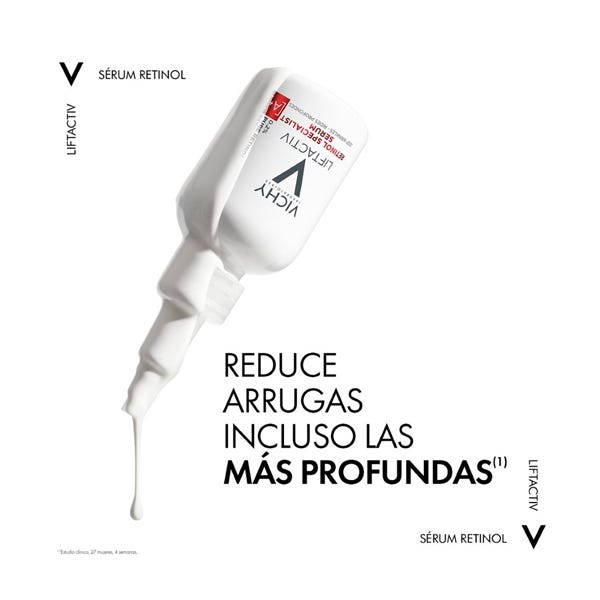 Liftactiv Sérum Retinol Specialist es el primer sérum de Laboratorios Vichy diseñado específicamente para combatir líneas de expresión y arrugas profundas, además de homogeneizar el tono y reforzar la función barrera.