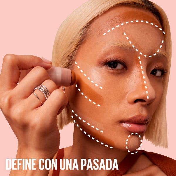 • Contornea para esculpir debajo de los pómulos, la mandíbula, el mentón y a lo largo de la línea del cabello.