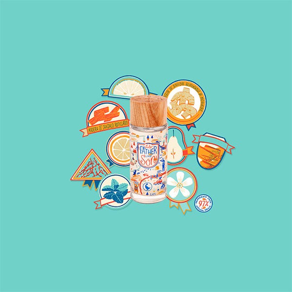 Like Father, Like Son es una fragancia para compartir, un eau de toilette que viene con instrucciones de uso: mantener cerca del alcance de los niños ¡y de los padres! Y como es natural, como la vida misma, sus componentes también lo son. El 97% de sus ingredientes son de origen natural y biodegradables, una fragancia vegana.
