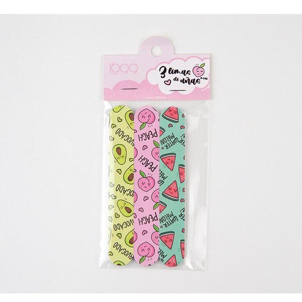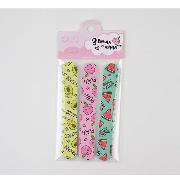 En pack de tres. Originales, prácticas y de gran precisión darán forma a tus uñas con un estilo único. Estas mini limas llenas de adorables dibujitos de frutas son de doble cara y te sacarán de más de un apuro haciendo que tus uñas no se desconchen. Su pequeño tamaño hará que las lleves siempre contigo en el bolso.