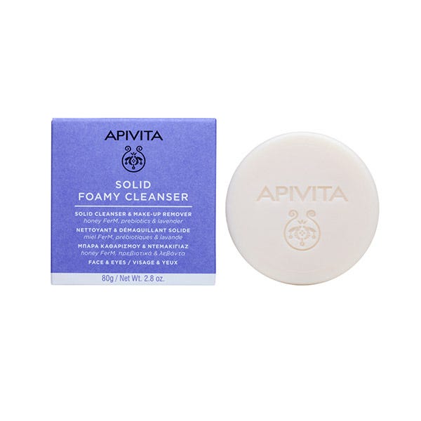 Espuma limpiadora facial aterciopelada en jabón sólido que limpia y elimina el maquillaje eficazmente sin resecar la piel.