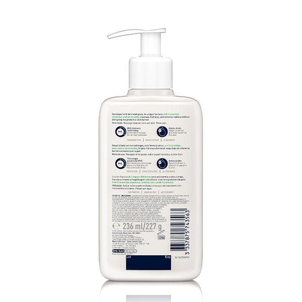 Desarrollado con dermatólogos, la Limpiadora Crema- Espuma Hidratante es una una crema limpiadora que se transforma en una suave espuma al aplicarse en la piel junto con agua.
