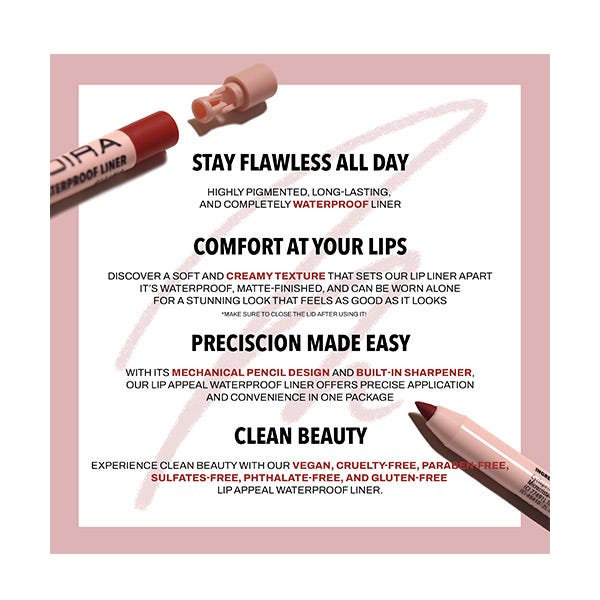 Si quieres un delineador de labios que ofrezca un color audaz y altamente pigmentado que no se mueva, MOIRA Lip Appeal Waterproof Liner es tu solución. Este delineador retráctil suave y cremoso se aplica sin esfuerzo con un solo trazo, proporcionando una fórmula de larga duración que se mantiene fija. Despídete de los borrones y da la bienvenida a unos labios perfectos que duran todo el día.