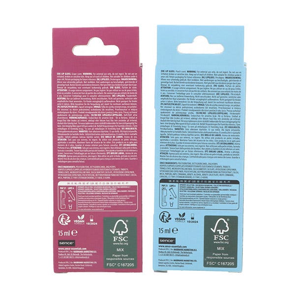 Aporta un poco de brillo a tus labios con estos labiales con aroma a melocotón o uva.
