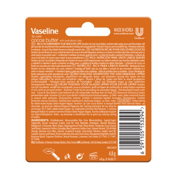Bálsamo labial para suavizar los labios secos dándole la nutrición que necesitan, con vaselina pura y rica manteca de cacao.