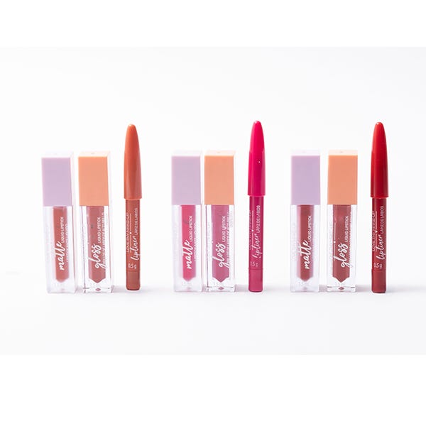 La combinación perfecta de colores para labios. Este set de 9 piezas contiene 3 fórmulas de labios líquidos mate enriquecidos con vitamina E para mantener los labios suaves e hidratados. Úsalos solos para un acabado mate o combínalos con el brillo labial coordinado. Cada uno de los 3 glosses de alto brillo contiene aceites nutritivos de jojoba, semilla de girasol y aguacate. Además, incluye 3 delineadores de labios perfectamente combinados.