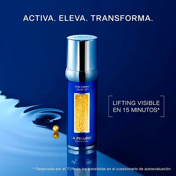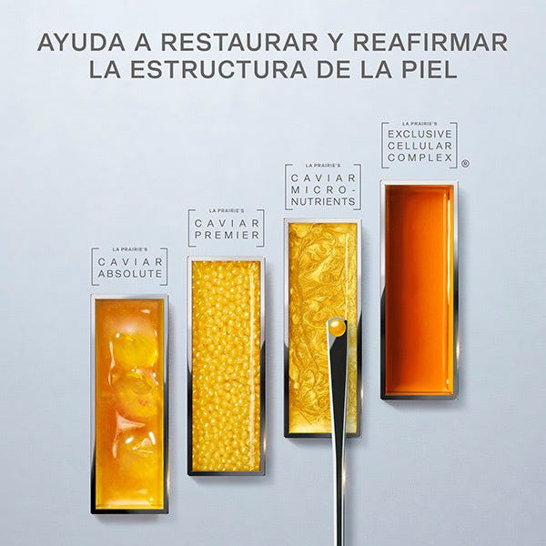La nueva fórmula de Skin Caviar Liquid Lift está potenciada por una combinación exclusiva de ingredientes del caviar y el Exclusive Cellular Complex™ para ayudar a recuperar la estructura juvenil de la piel. Los Caviar Micro-Nutrients estimulan las rutas energéticas esenciales para reforzar el metabolismo de la piel desde su origen. Caviar Premier y Caviar Absolute reparan la estructura de la piel para ayudar al efecto lifting y reafirmante. Los péptidos activan la formación de colágeno y el ácido hialurónico retiene la hidratación de la piel y refuerza su barrera natural.