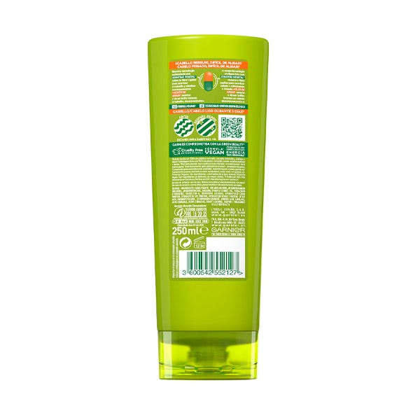 El acondicionador Fructis Liso & Brillo es un acondicionador fortificante enriquecido con aceite de argán natural y keratina vegetal líquida, ingrediente con propiedades reconstituyentes, que desenreda, disciplina, protege la fibra capilar del encrespamiento y mantiene el liso por más tiempo sin apelmazar.