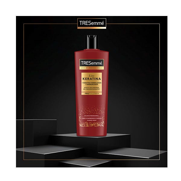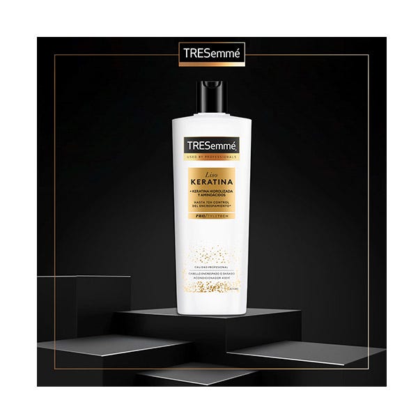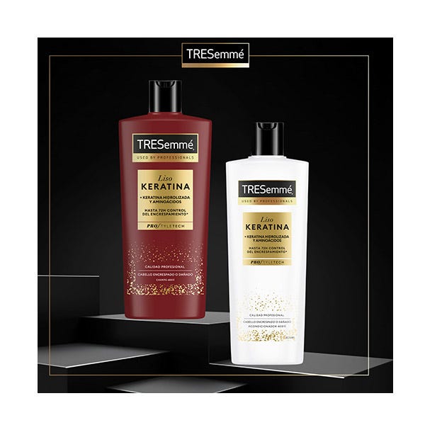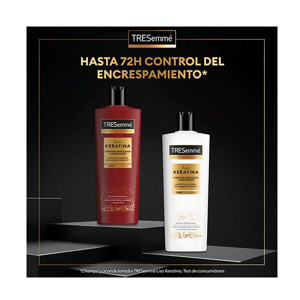 El acondicionador TRESemmé Liso KERATINA, combate el encrespamiento con nuestro poderoso sistema Liso Keratina, con Keratina hidrolizada, diseñado para transformar el cabello encrespado y lograr un acabado suave y liso hasta 72 horas. Hasta 72 horas control del encrespamiento*.