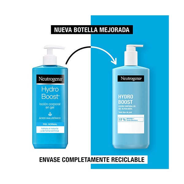 Clínicamente probada, la fórmula refrescante y ultraligera de Hydro Boost Loción Corporal en Gel de Neutrogena está enriquecida con ácido hialurónico.