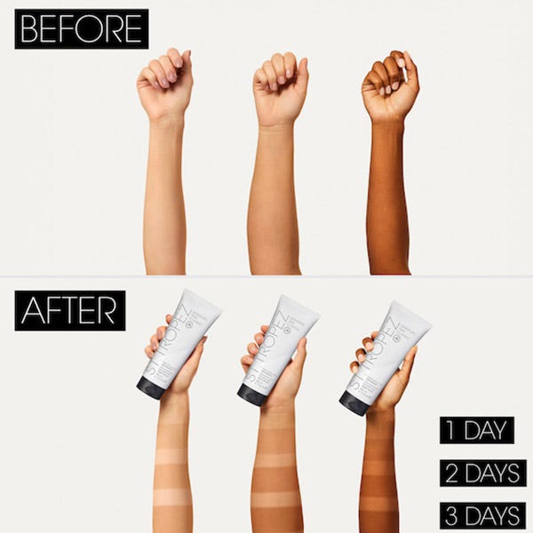 Aqua (Water), Coco-Caprylate, Dihydroxyacetone, Cetearyl Alcohol, Pentaerythrityl Distearate, Cetearyl Glucoside, Glycerin, Dimethicone, Ethoxydiglycol, Vitis Vinifera (Grape) Seed Oil, Alaria Esculenta Extract, Rubus Idaeus (Raspberry) Seed Oil, Vaccinium Myrtillus Seed Oil, Biosaccharide Gum-1, Sodium Hyaluronate, Caprylic/Capric Triglyceride, Capryloyl/Capryloyl Leucine Isosorbide Esters, Ceteareth-20, Parfum (Fragrance), Phenoxyethanol, Caprylyl Glycol, Cellulose, Xanthan Gum, Isosorbide, Pentaerythrityl Tetra-Di-t-Butyl Hydroxyhydrocinnamate, Tocopherol, Helianthus Annuus (Sunflower) Seed Oil, Hexanediol, Hydroxyacetophenone, Benzyl Salicylate, Linalool, Coumarin, Limonene, Citronellol.