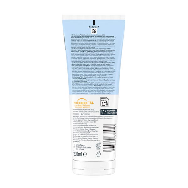 Neutrogena Ultra Sheer Loción Invisible Hidratante SPF50 (200 ml), protector solar corporal, crema de sol de cuerpo resistente al agua, protector solar SPF50 ultraligero e hipoalergénico.