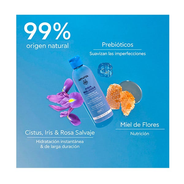 Este tónico formulada por expertos con una fusión de flores de cistus, iris, rosa salvaje y miel y prebióticos para una hidratación instantánea y una piel más suave, ofrece una explosión de hidratación y frescor con extractos de flores, miel, aloe y ácido hialurónico, suaviza la piel y reduce las imperfecciones (rojeces, irritaciones) respetando el microbioma con prebióticos; el primer paso ideal para cualquier rutina de cuidado de la piel