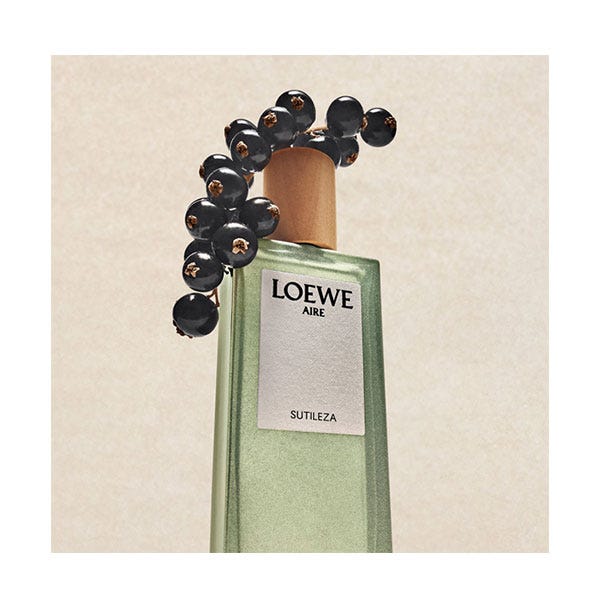 Los perfumes de mujer de la familia LOEWE Aire se presentan en el característico pack monocromático de la marca, distinguido con la fotografía “Vaccinium corymbosum” de Karl Blossfeldt, que representa su ligereza y delicadeza. En su interior, el nuevo frasco en bloque, diseñado por el director creativo de LOEWE Jonathan Anderson, adopta un tono verde hoja irisado inspirado en los ingredientes cítricos que componen la fragancia.