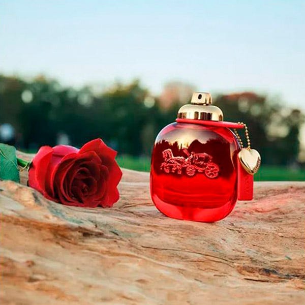 Este eau de parfum floral y afrutado se abre con una nota de salida de fresa silvestre, acentuada por una rica y aterciopelada nota de corazón de rosa roja aterciopelada, antes de secarse en una cálida madera de cedro.