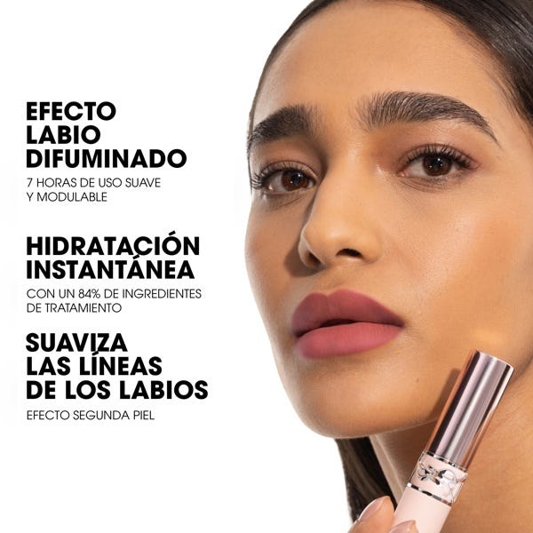 Este ligero pintalabios mate ofrece hasta 7 horas de acabado difuminado con un uso cómodo y modulable, permitiéndote aplicar capas de color hasta la intensidad deseada sin que resulte pesado.