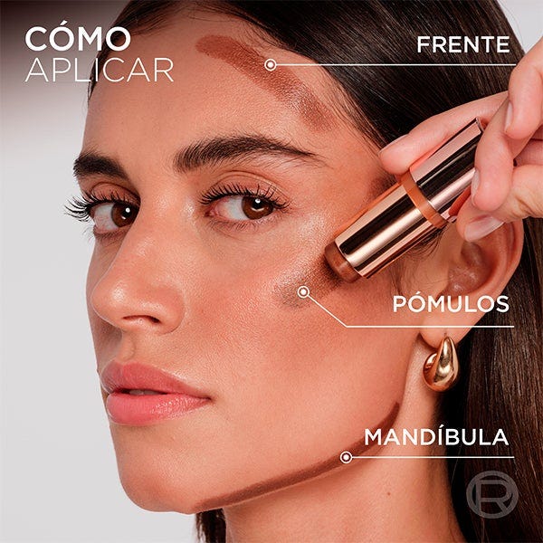 Para añadir calidez y dimensión, desliza sobre la frente, los pómulos y la mandíbula. Mezcla con las yemas de los dedos, un pincel o una esponja para un brillo natural y uniforme.
