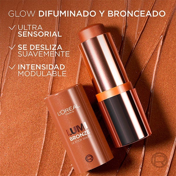 Date un baño de sol francés con Lumi Le Bronze Le Stick Soleil. Este bronceador en barra con textura de crema a polvo se desliza sin esfuerzo, dejando en tu rosto un brillo difuminado y bronceado. Modulable y difuminable, no se cuartea.