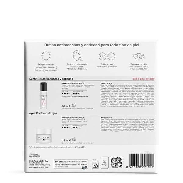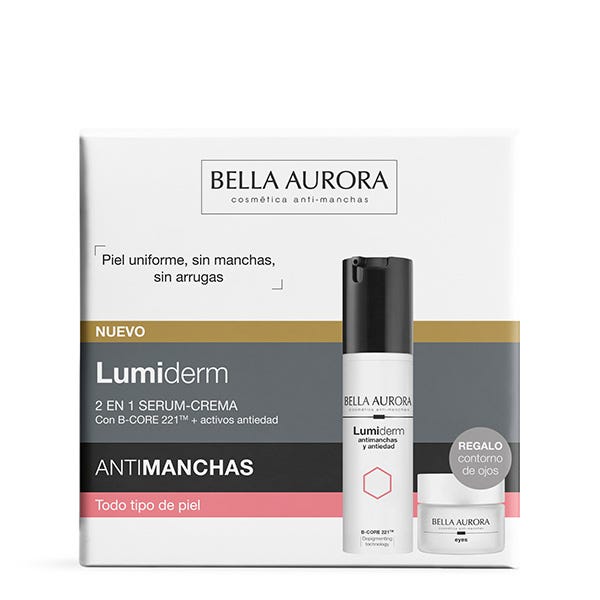 En este estuche encontrarás lumiderm antimanchas y antiedad y eyes