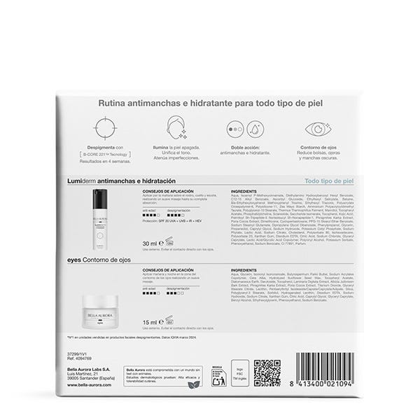 En este estuche encontrarás lumiderm antimanchas e hidratación y eyes