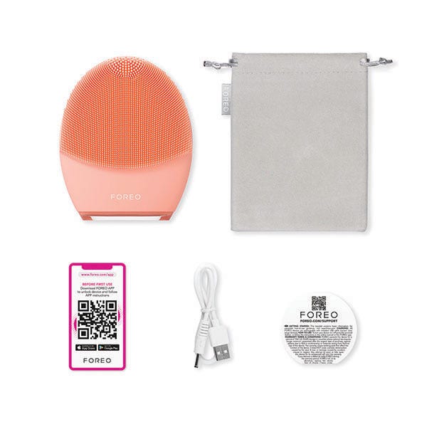 FOREO LUNA™ 4 es un avanzado dispositivo de limpieza facial y masaje reafirmante 2 en 1 para que comiences el día con un ritual de belleza único y saques el máximo partido a tus productos de belleza.