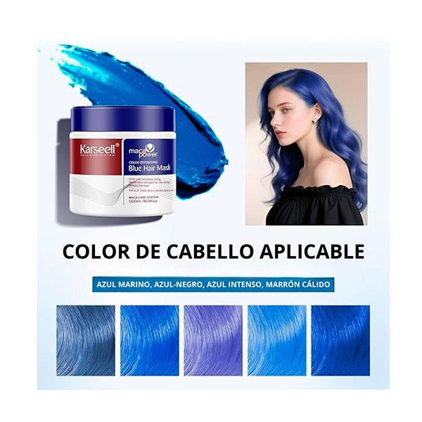 Perfecta para quienes desean mantener su color con resultados visibles desde la primera aplicación, la mascarilla azul Karseell ofrece un cuidado intensivo que combina pigmentación y reparación, logrando una melena suave, brillante y llena de vitalidad.