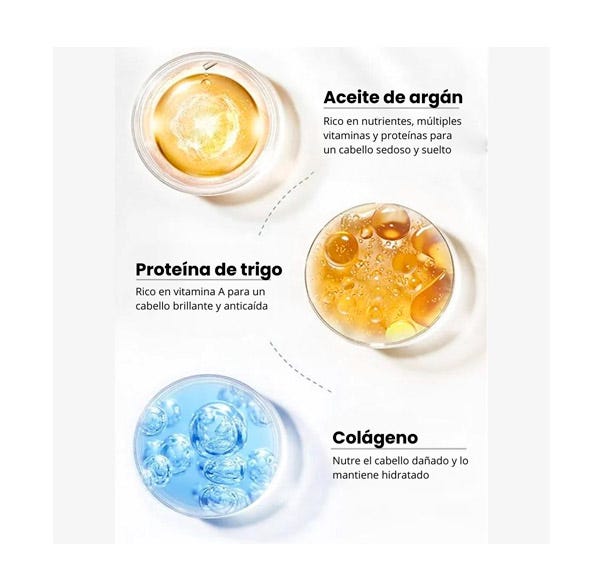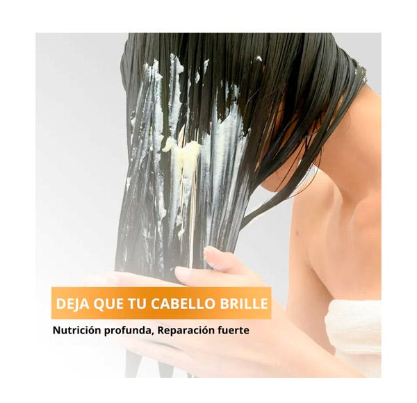 ¿Y qué más? Para empezar, es perfecto para todo tipo de cabello, liso, ondulado, rizado grueso, fino... Ya sea que busques un tratamiento intensivo o sólo un poco de mimo para tu melena, esta mascarilla de pelo hace maravillas. Además, es un alisador natural. Sí, has leído bien, te ayuda a controlar ese frizz rebelde que tanto molesta y deja tu cabello manejable, suave y superbrillante. ¡ Y no nos olvidemos de los ingredientes ! Todo en esta mascarilla KARSEELL es natural. Es vegana, libre de químicos dañinos y está cargada con ácido hialurónico para esa hidratación extra que todos necesitamos. También hemos incluido esencia de maca, conocida por sus beneficios para el cabello, incluyendo el fortalecimiento y la revitalización. Y si te preocupa la exposición al sol, tranquilo, nuestra mascarilla pelo ofrece protección contra los rayos UV, manteniendo tu cabello seguro y saludable. Además, con su garantía de calidad, puedes estar seguro de que estás tratando tu cabello con lo mejor. Y no olvidemos la vitamina E, que aporta un brillo único a tu melena. En resumen, esta mascarilla es un todo en uno. Reparación profunda, hidratación, protección y un aroma que te enamorará. ¿ Qué más se puede pedir ? ¡ Pruébala y siente la diferencia en tu cabello !