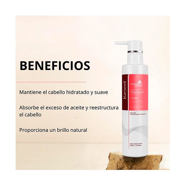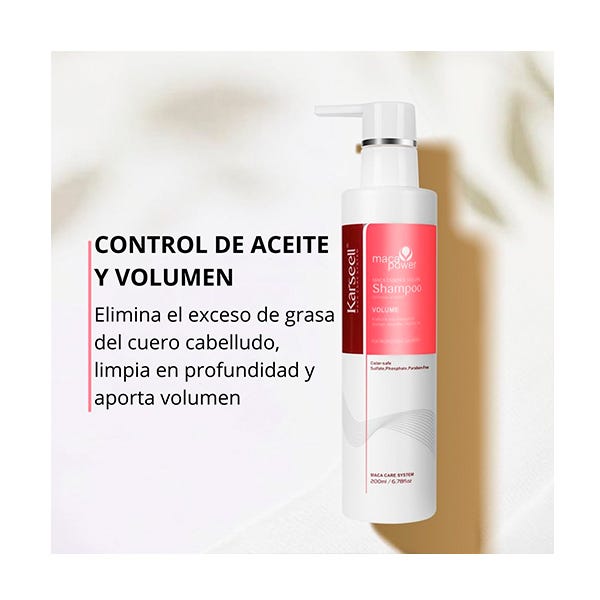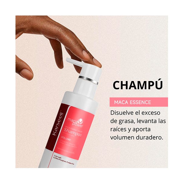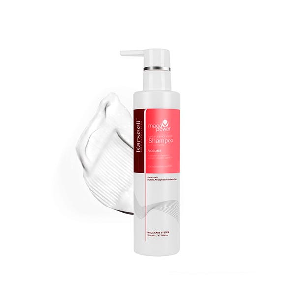 El Champú Maca Care System Essence Volume de Karseell es un champú profesional especialmente formulado para devolver fuerza, cuerpo y volumen al cabello fino, lacio o sin vida.