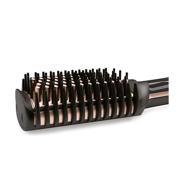 Con un gesto tan simple como peinarse se obtienen excelentes resultados incluso en el cabello rizado o encrespado. Además, como la temperatura se puede regular de 160°C a 210°C, el cepillo es apto para todo tipo de cabello.