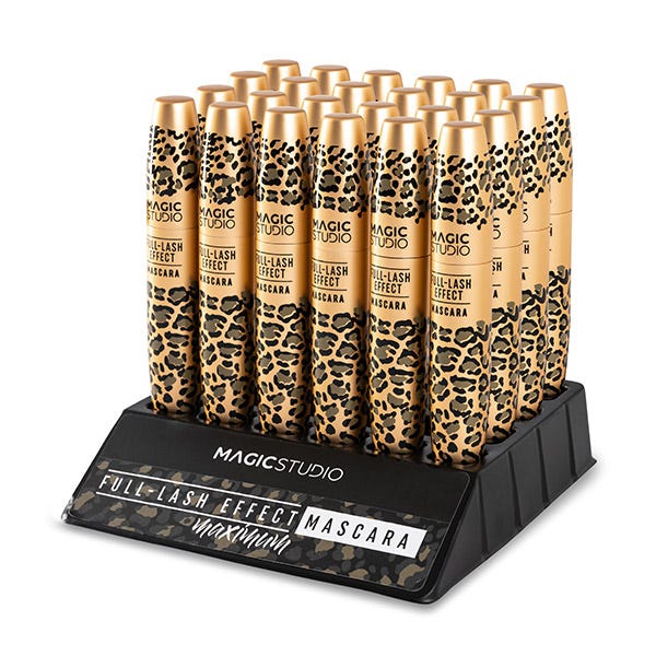 Déjate seducir por la Máscara de pestañas voluminizadora de Magic Studio. Amplifica y define la mirada aportando un volumen extremo "efecto pestañas postizas" con un negro más intenso. Su fórmula negra con pigmentos saturados y su cepillo de fibras más gruesas cubren las pestañas de la raíz a las puntas, aumentando visiblemente el grosor de las pestañas, sin apelmazar, para un volumen de larga duración y un negro más profundo.