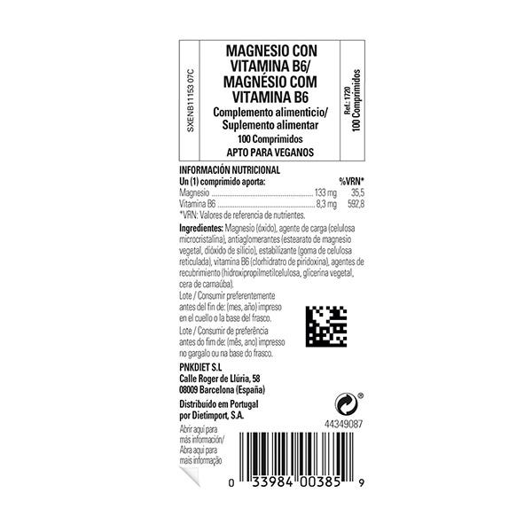 Magnesio (óxido); Agente de carga: celulosa microcristalina; Antiaglomerantes: estearato de magnesio vegetal, dióxido de silicio; Goma de celulosa reticulada; Vitamina B6 (piridoxina HCl); Agentes de recubrimiento: hidroxipropilmetilcelulosa, glicerina vegetal (aceite de palma y aceite de coco), cera de carnauba.