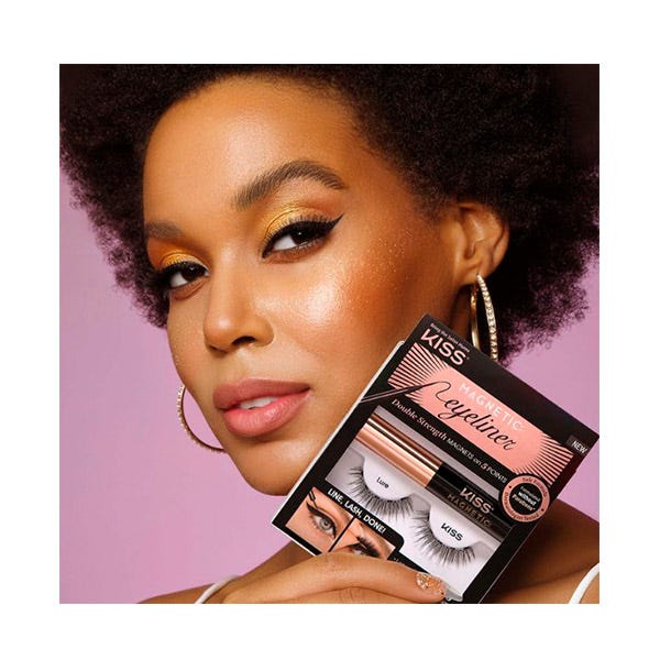 KISS Delineador de ojos magnético con cinco imanes de doble fuerza en sus pestañas.