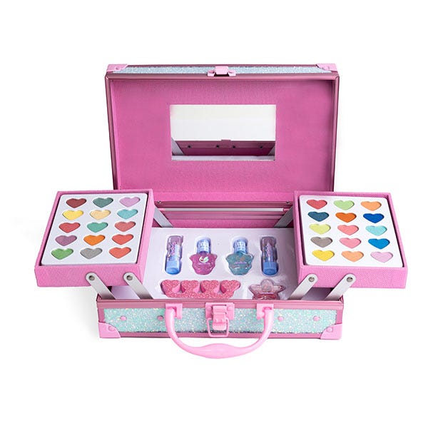Siéntate como una sirena con este maletín holográfico con motivos marinos que incluye todo lo necesario para crear el mejor makup. Con espejo incluido.