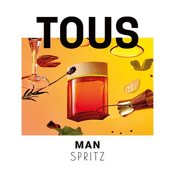 TOUS firma esta fragancia en la que la palabra “Spritz ” invita a vivir la vida en su versión más burbujeante. Su frasco, en forma de prisma curvado en un color degradado que oscila desde el rojo al naranja, evoca la agradable sensación de tener una copa en la mano.
