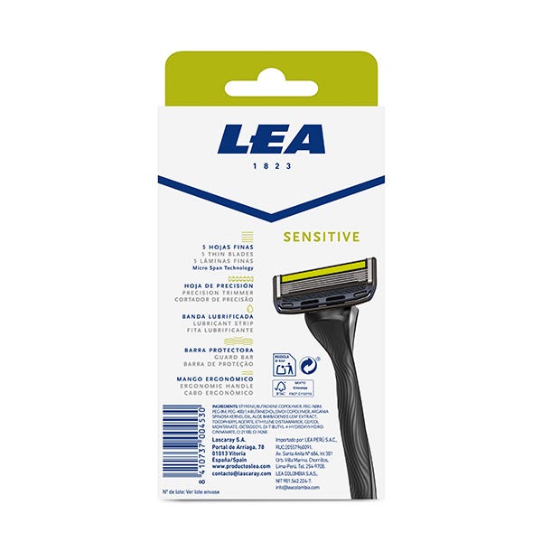 Sistema de 5 hojas con 1 hoja de precisión con tecnología micro span, perfectamente alineadas para un apurado perfecto y suave afeitado.