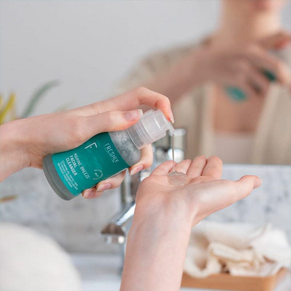 Humedece el rostro y aplica 2 pulsaciones del Marine Breeze sobre los dedos.