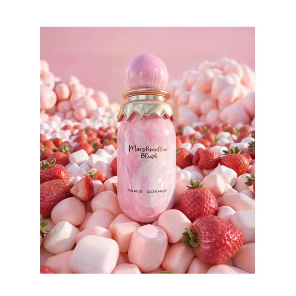 Presentamos Marshmallow Blush, el nuevo tesoro de Paris Corner. Susurros de fresa y frambuesa bailan con la ralladura de limón, dulce preludio de un corazón de cremosa nata montada y flor de azahar. Anclada en la tierna calidez del almizcle, el malvavisco y la vainilla, esta fragancia es una sinfonía de suavidad, una caricia de dulzura sobre la piel.