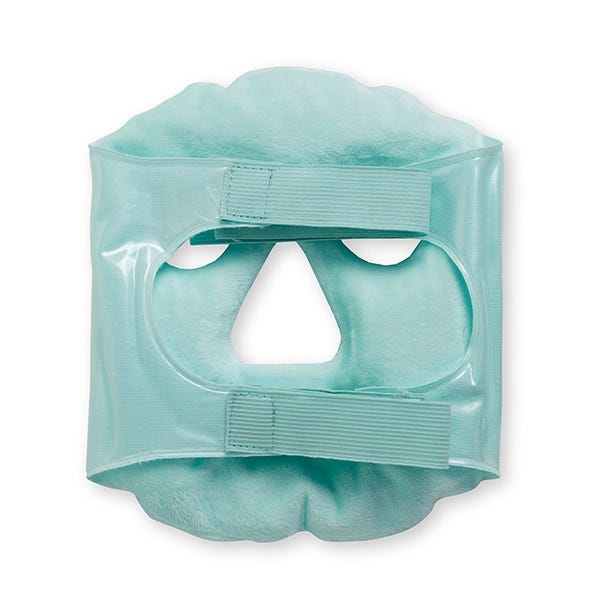 Máscara facial efecto frío / calor para combatir los signos de cansancio, estrés, dolores de cabeza y migrañas. También deshincha y calma las pieles irritadas y ayuda a mejorar el aspecto de las bolsas y ojeras. Disponible en dos colores: rosa y azul.