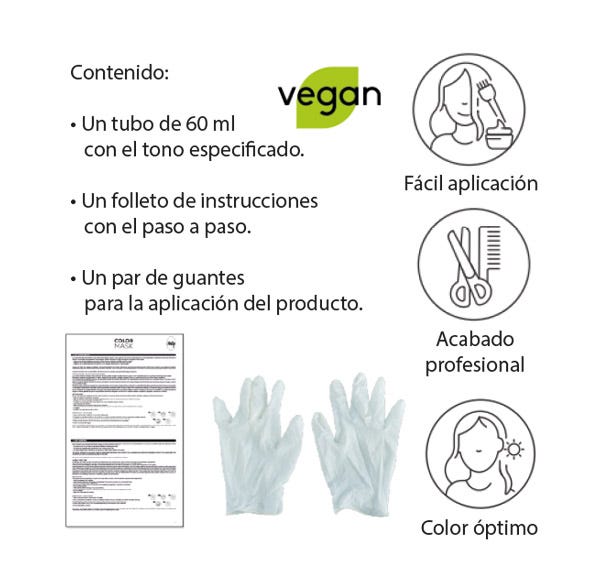 Manejo Cauteloso: en el momento de aplicación, se recomienda utilizar una toalla sobre los hombros así como los guantes incluidos en el estuche. Asimismo, hay que tener cuidado al manipular el cabello húmedo después de aplicar la mascarilla para evitar transferir el pigmento a objetos o superficies.